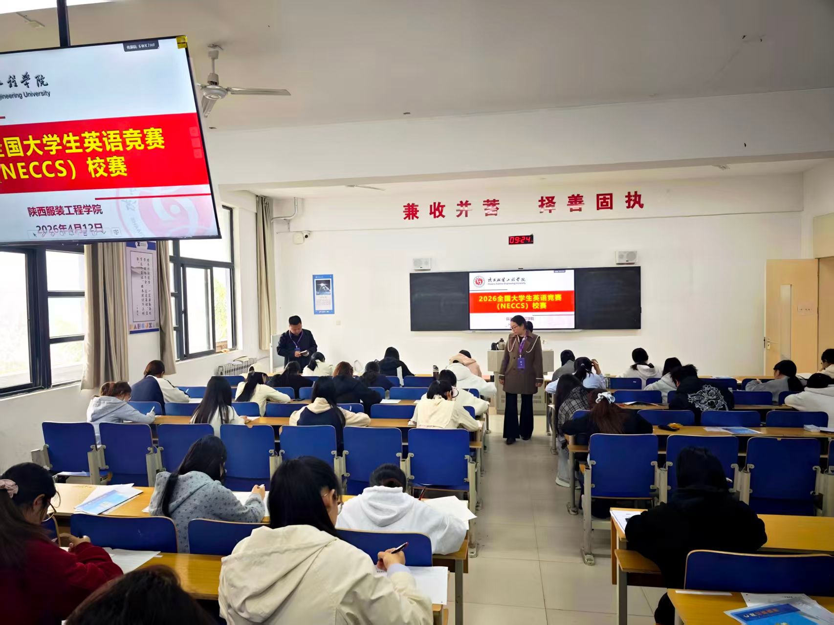 陕服新闻网讯(杨扬)4月12日上午,2026年全国大学生英语竞赛(NECCS)校级在我校教学楼B区如期开展。该赛项由全国大学生英语竞赛组织委员会、全国高等师范院校外语教学与研究协作组主办,陕西服装工程学院基础部承办,旨在激发全校学生英语学习热情,检验大学英语教学成果,为广大学子搭建展示英语综合能力的高水平平台。本次初赛严格按照全国大学生英语竞赛赛事标准组织开展,全校共计218名学生踊跃报名参赛。参赛学生分为C、D两类,...