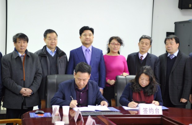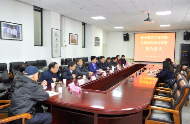 旷岚代表英国国际教育联盟,张义明代表陕西服装工程学院签订了合作协议