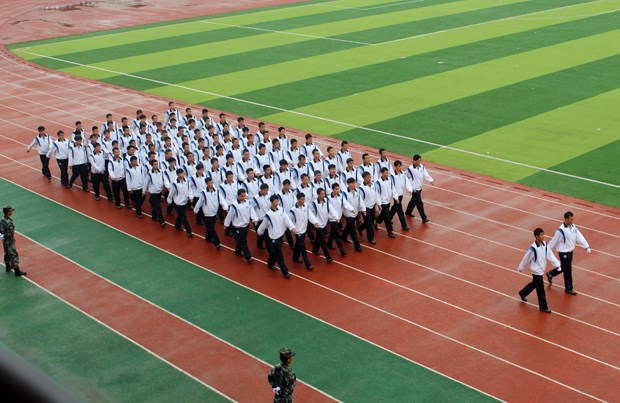 十时许,大会开始了宏大、壮观的军训汇报表演。表演由2000名女生的健身操、300名新生的双节棍、800名女生的手语操、700名新生的武警拳术和900名女生的大型团体操组成。表演或给人以优美,轻松的艺术享受,或给人以搏击的壮烈勇猛神速,以多变的艺术形式和时尚的舞蹈元素,赢得了现场观众的阵阵掌声。